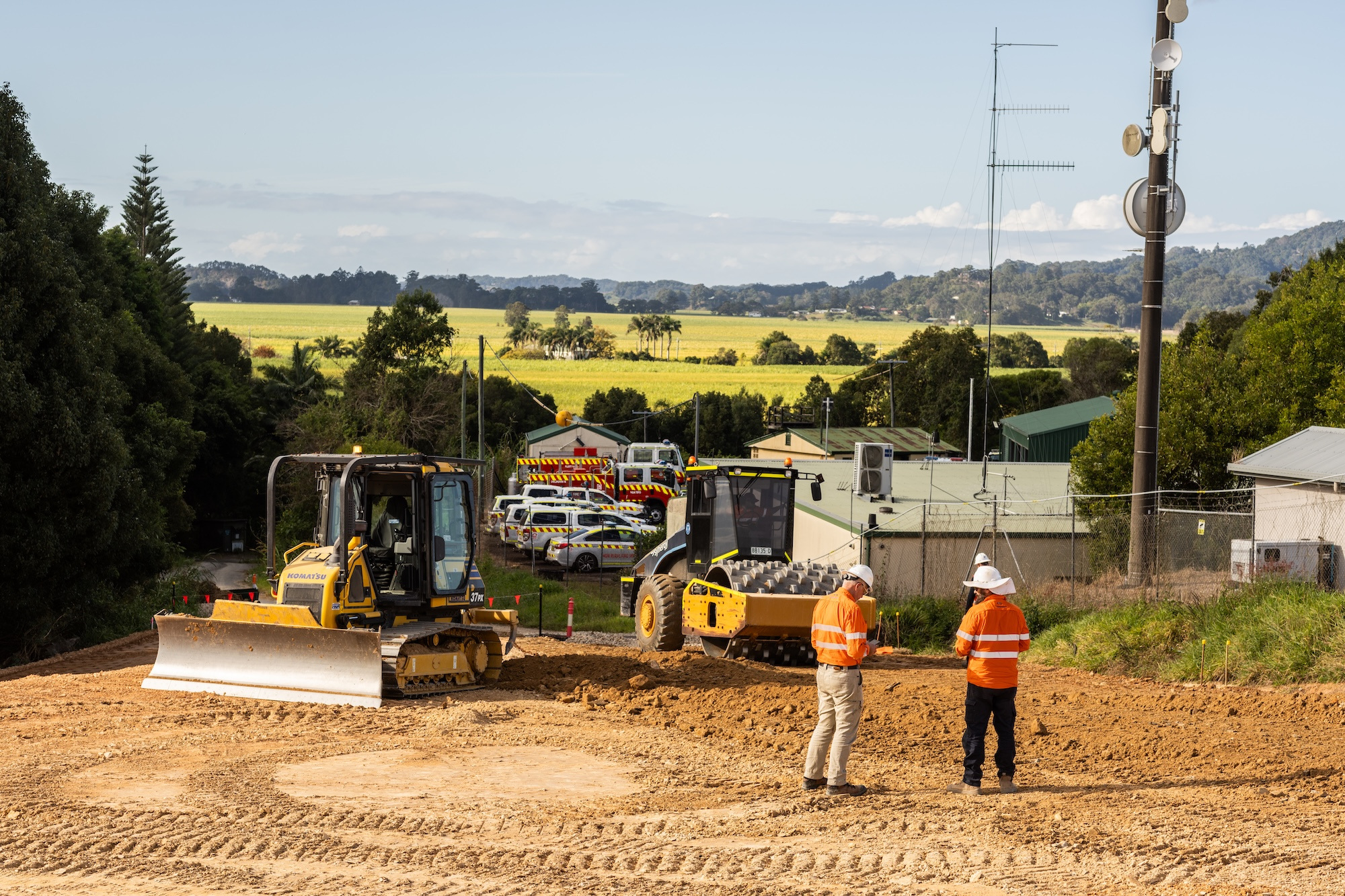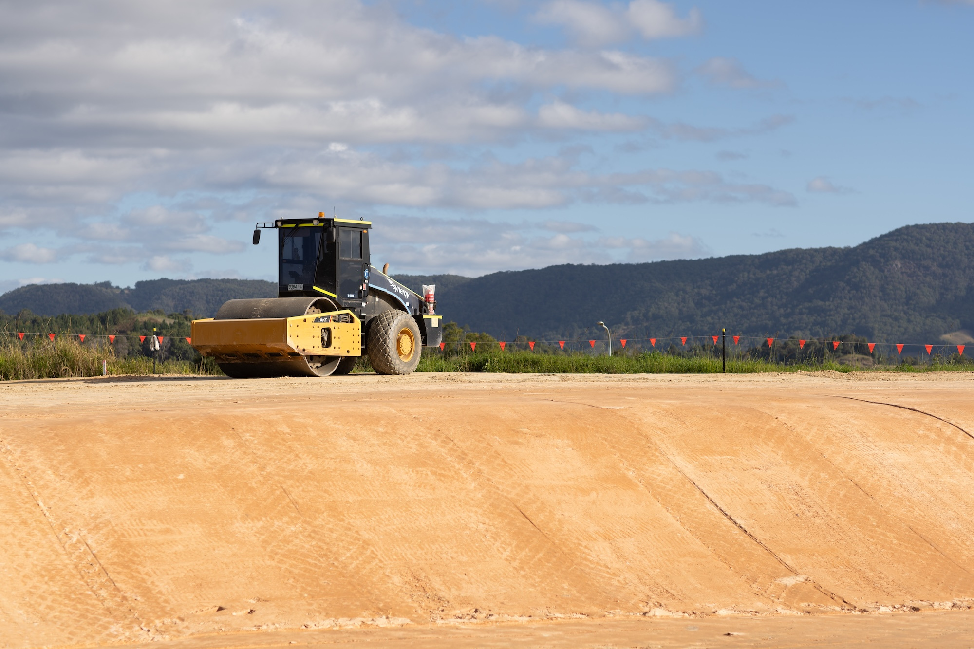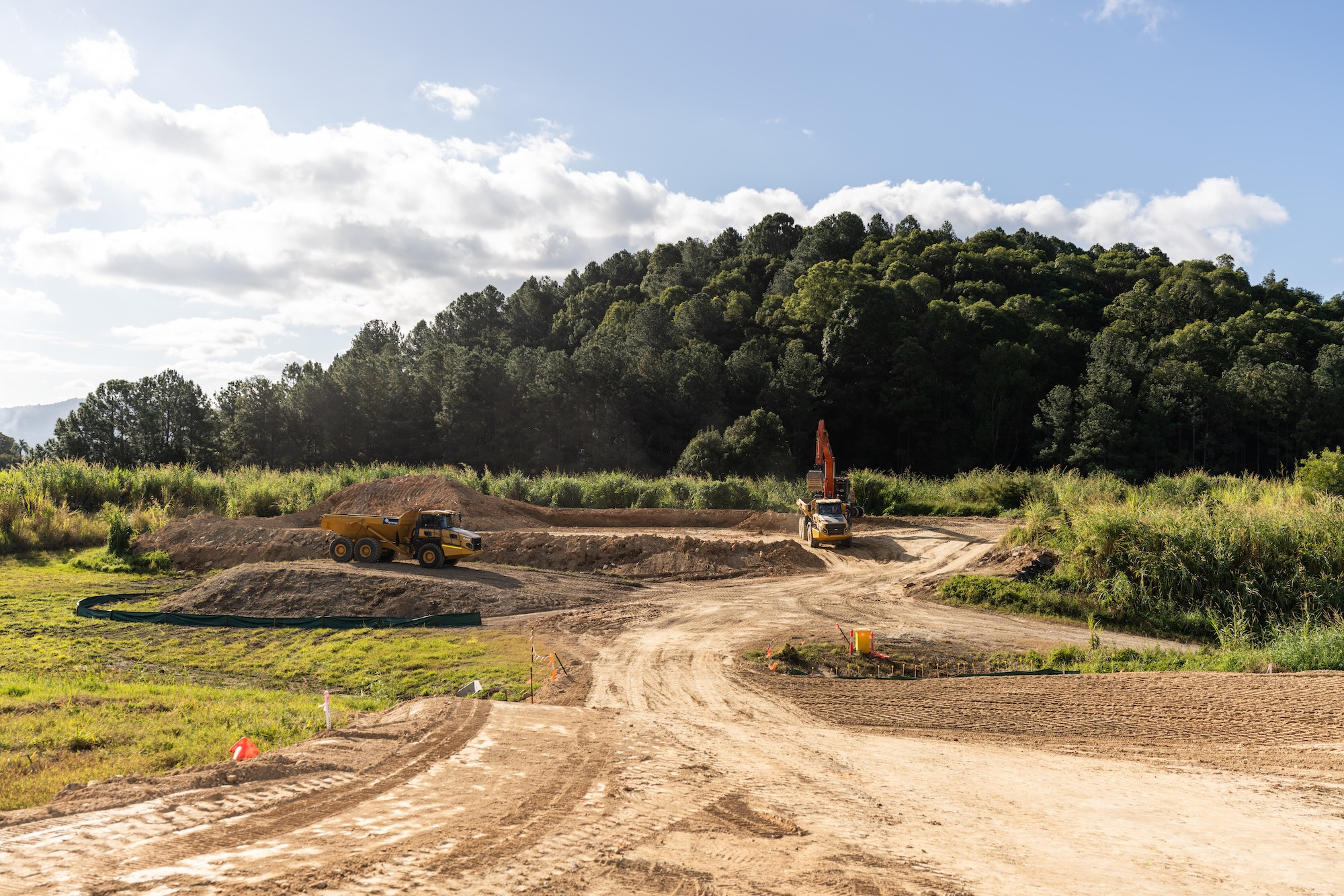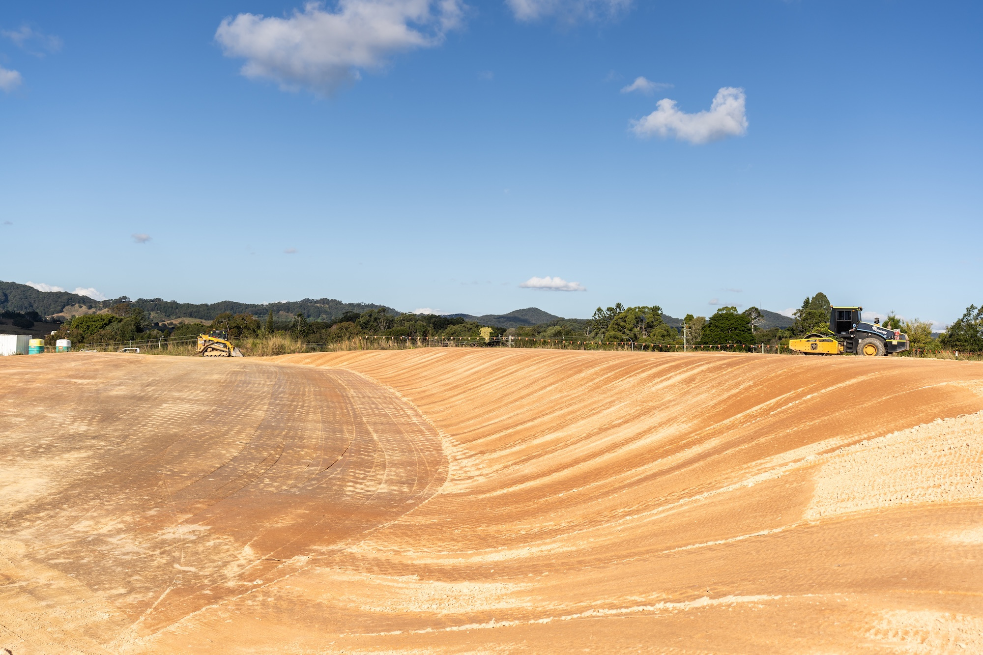 The work involved the construction of 4 level building / access pads and the construction of 550 metres of access roads base and 460 metres of swales and concrete culverts to control water over the site.