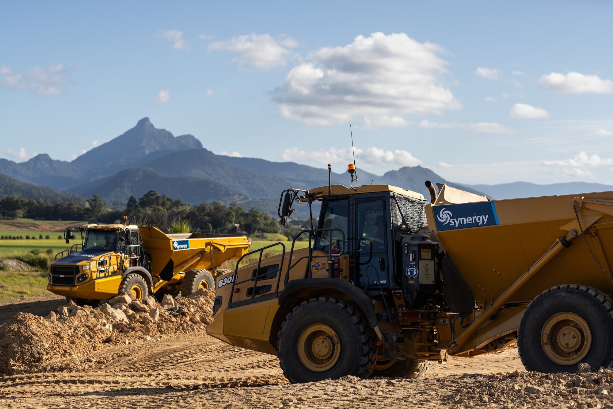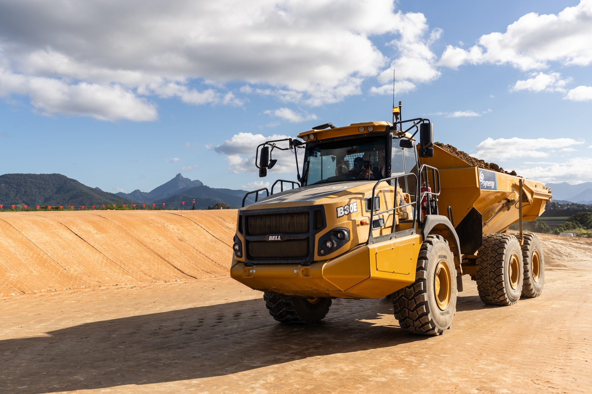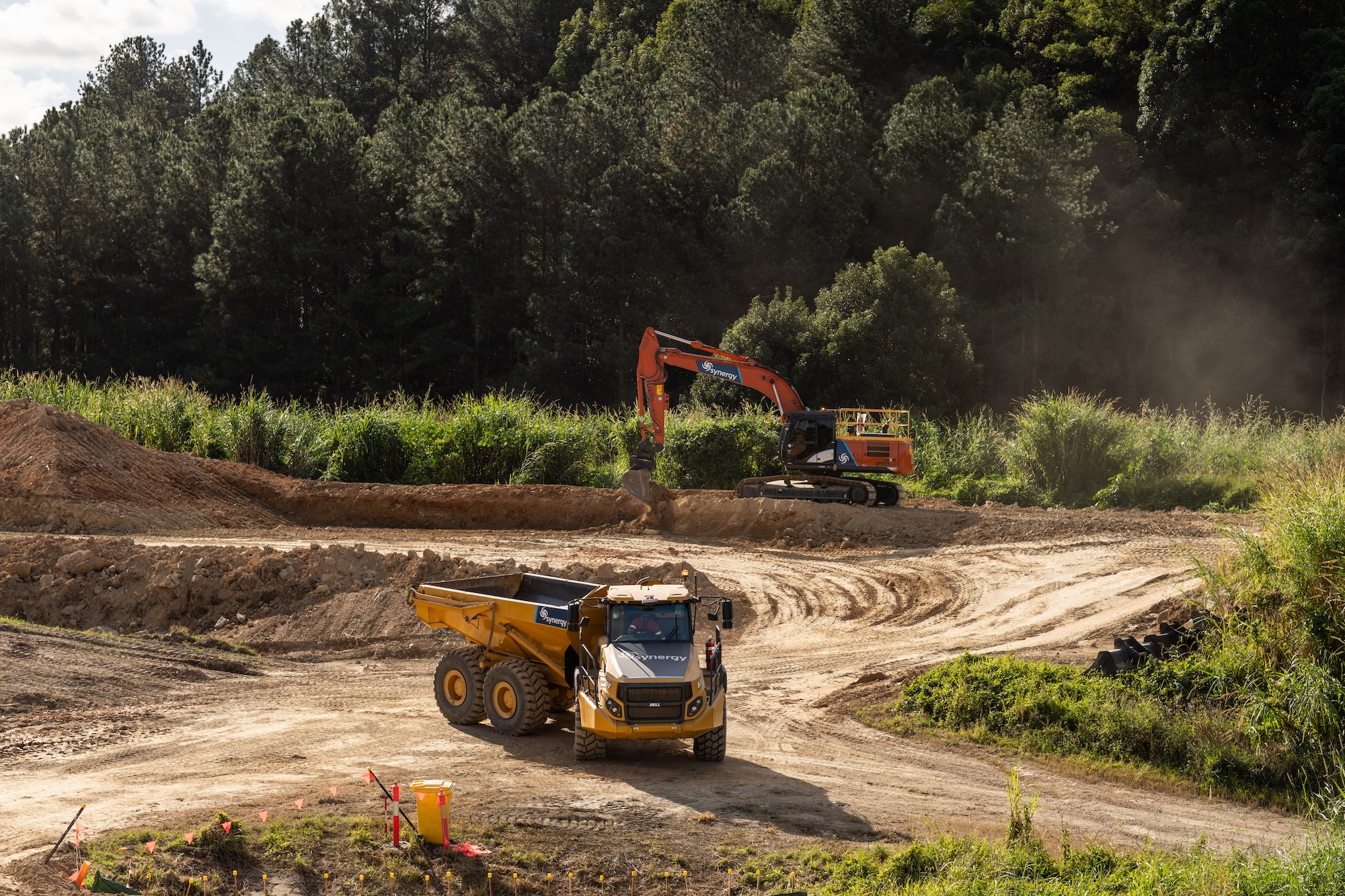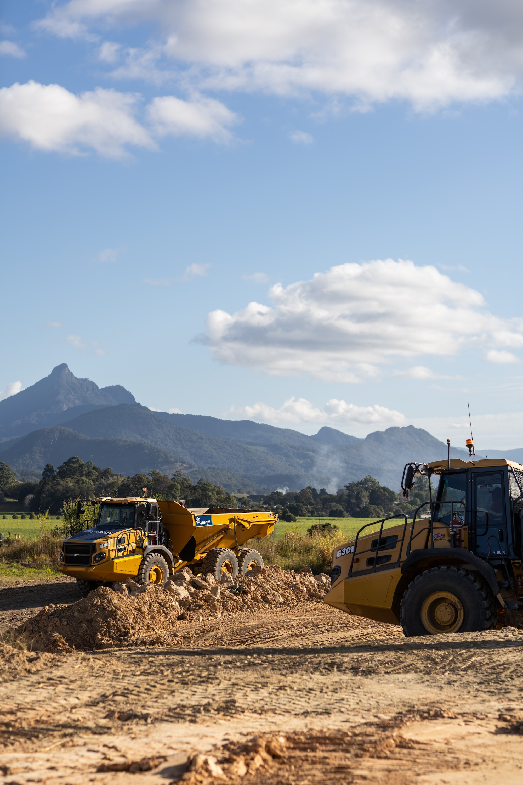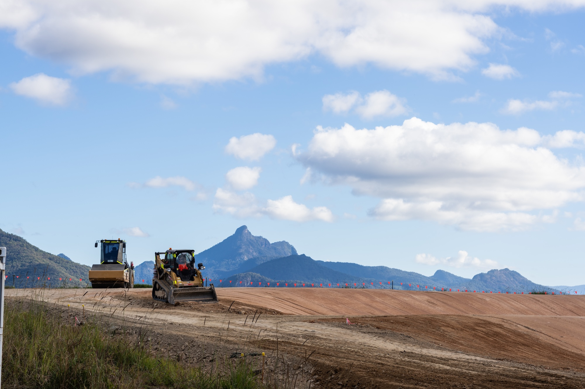 The work involved the construction of 4 level building / access pads and the construction of 550 metres of access roads base and 460 metres of swales and concrete culverts to control water over the site.