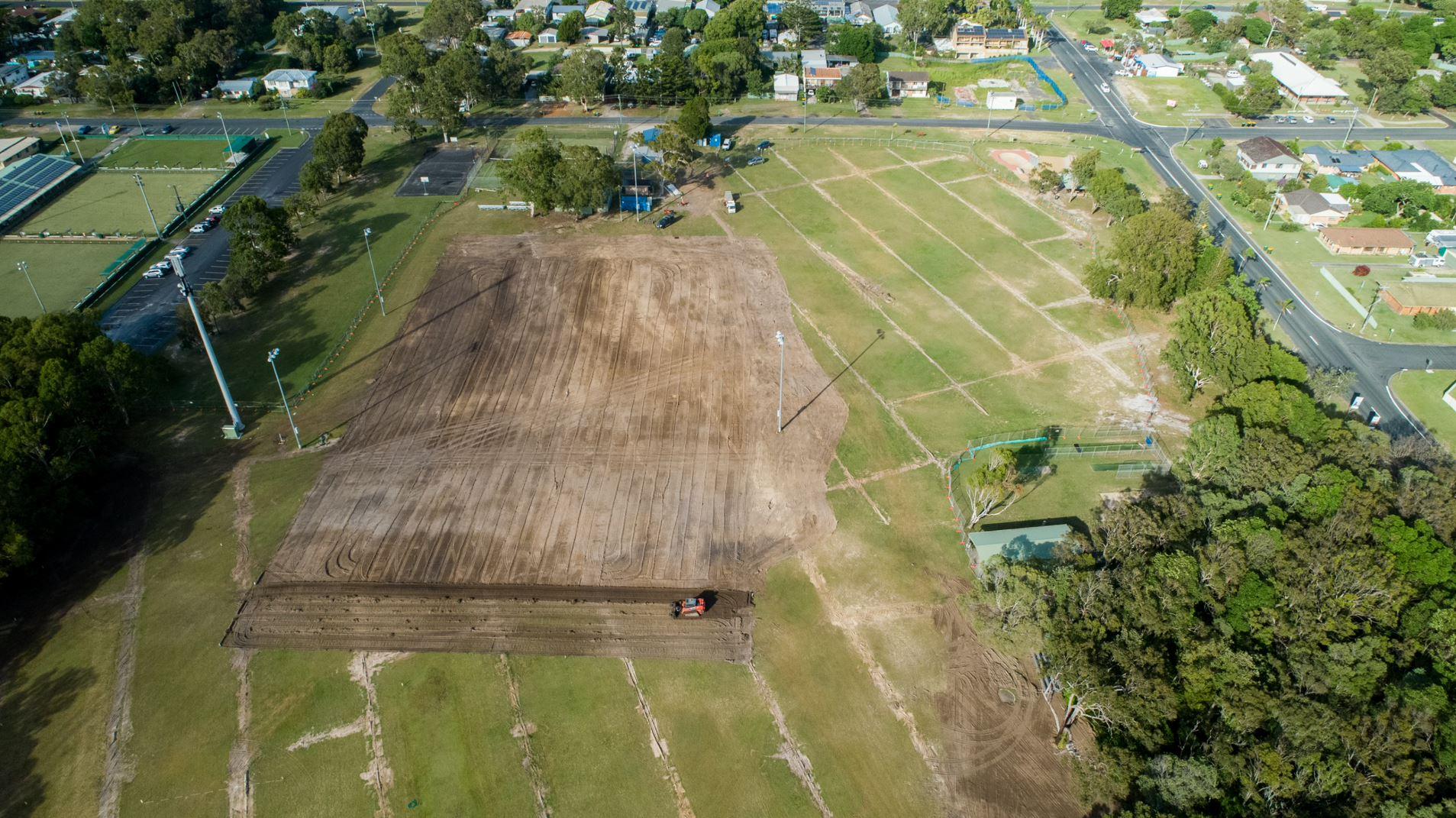 Synergy were contracted by Clarence Valley Council to upgrade the Ken Leeson Oval. Site levels were verified using laser levelling to determine cut and fill. Soil amelioration and turfing was undertaken followed by design and construction of a hydraulic irrigation and pumping system.