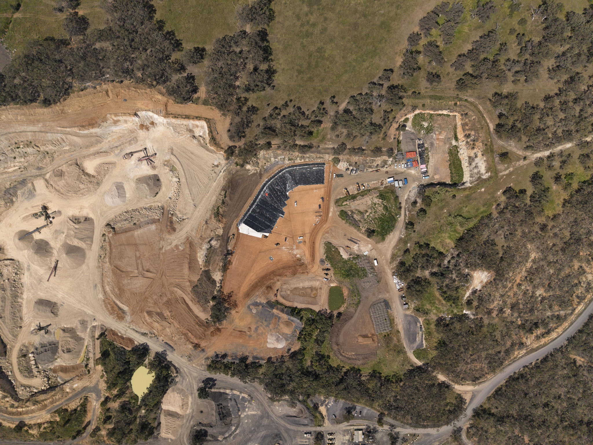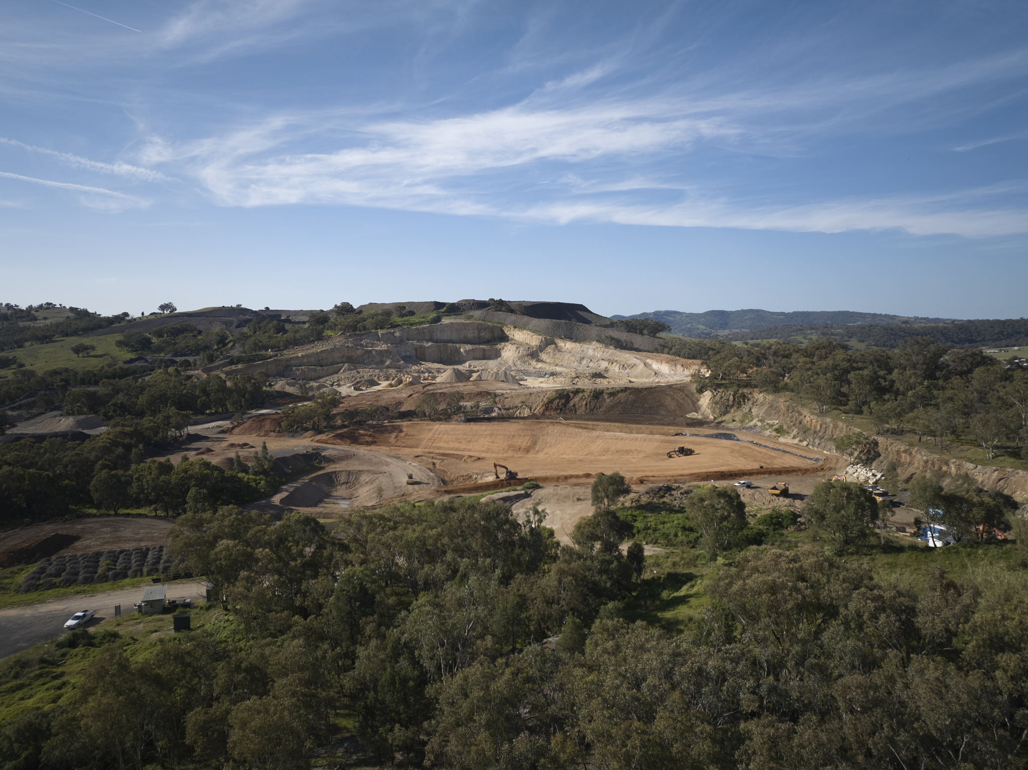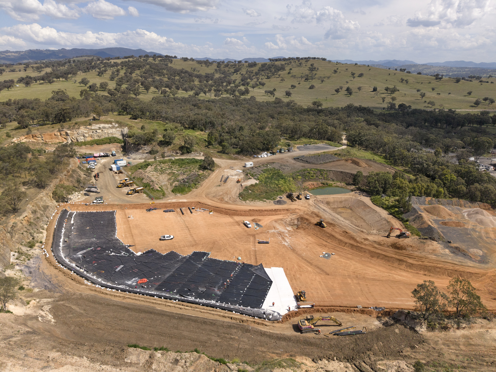 The scope of work includes constructing a new landfill cell featuring a leachate barrier and collection system, alongside supporting infrastructure such as a leachate pond, sediment pond, weigh bridge, gatehouse, site office, and waste transfer station with associated services.